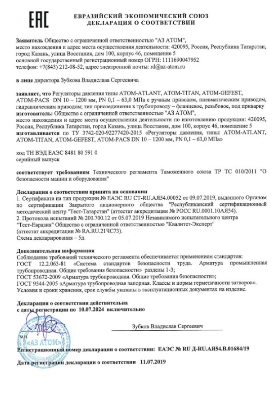 Промышленный регулятор давления АТОМ