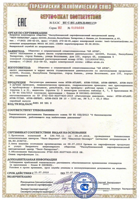 Регуляторы давления, работающие без использования постороннего источника энергии серий ATLANT, GEFET, TITAN, PACS